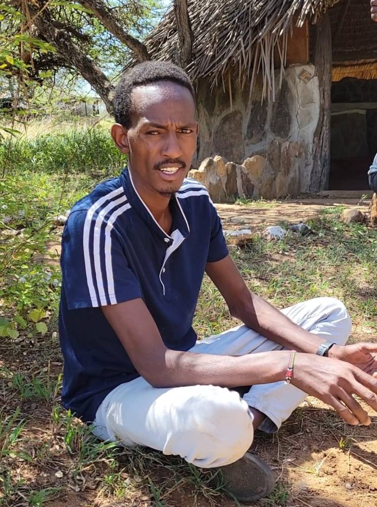 Gédéon, Ranger d’Ol Pejeeta Conservancy qui a veillé sur nous lors de notre nuit au milieu des animaux sauvagesEn terre Samburu avec Paul et deux jeunes Moranes, Rashid et EriksenDans une habitation Samburu entouré de Eriksen, Paul, Mzee Nguya et RashidWilliam et son ami apiculteur qui produit un miel d’acacia extraordinaireWilliam et papa partagent leurs connaissances au bord de la rivière Ewaso Nyiro