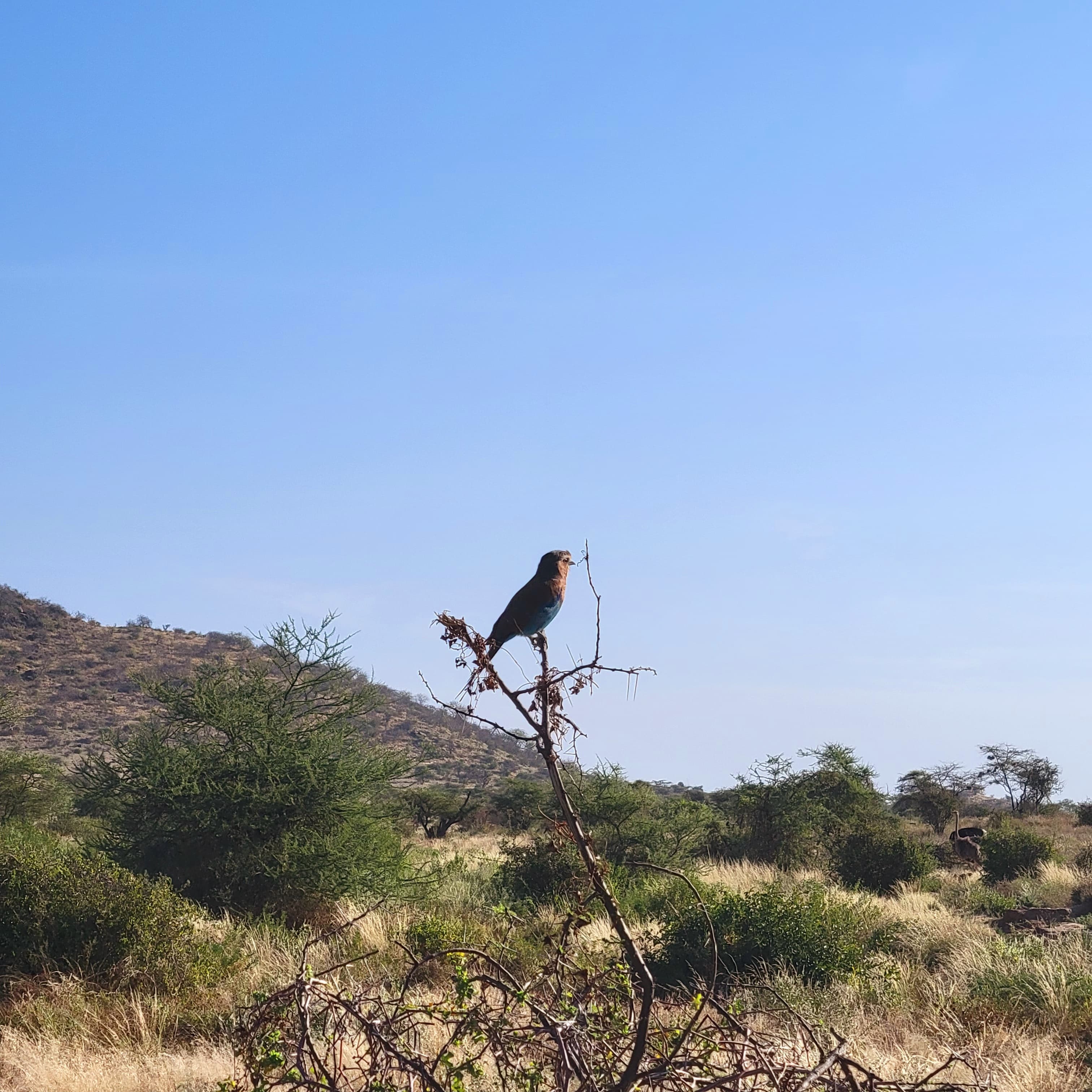 Rollier à long brins scrutant l’horizon dans la réserve Nationale de SamburuJeune mâle au repos dans la Réserve Naturelle d’Ol Pejeta