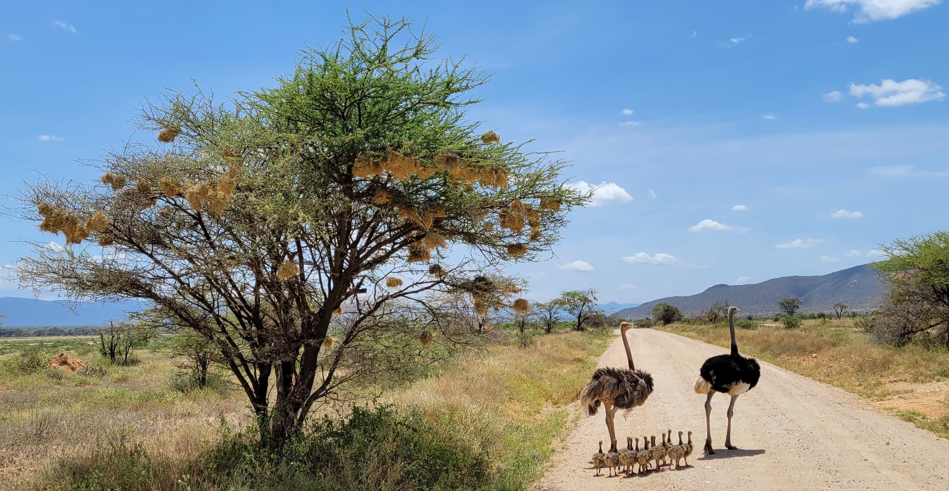 Cette magnifique famille d’autruches nous a accueilli à notre arrivée dans la Reserve Nationale de Samburu