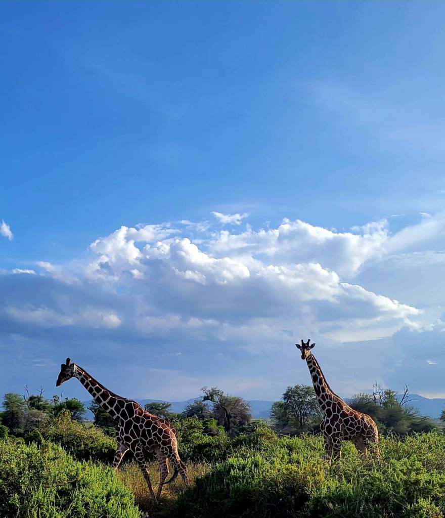 Girafe réticulée dans la Réserve Naturelle d’Ol PejetaOiseaux guêpiers au sommet d’un acacia dans la Réserve Nationale de Samburu